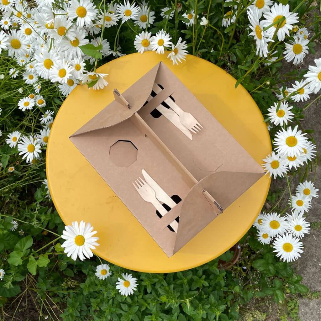 Alle take away dozen zijn voorzien van een handvat, bestekhouders en functionele bekerhouders. Door er bakjes bij te kopen, deel je de take away box eenvoudig op in verschillende compartimenten. De boxen zijn gemaakt van milieuvriendelijk FSC karton en zijn eenvoudig te recyclen.